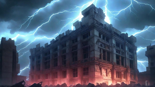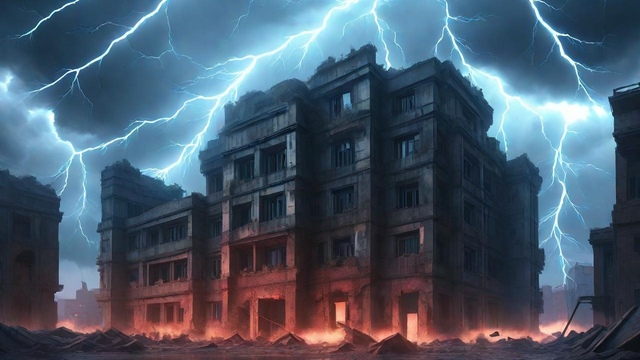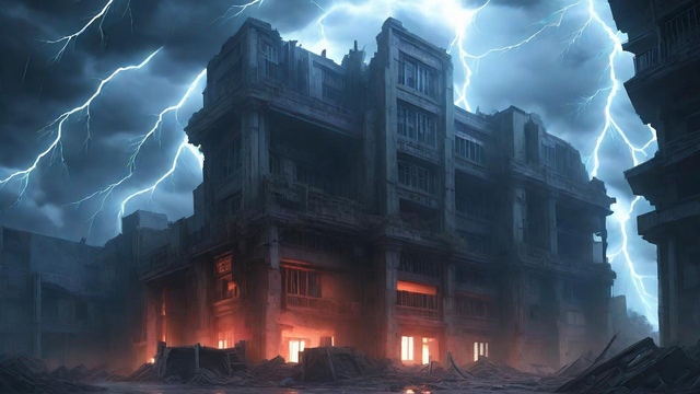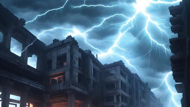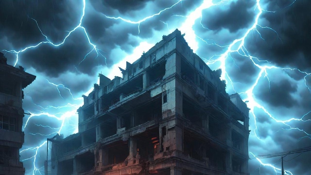 【废弃大楼-闪电雷雨天】