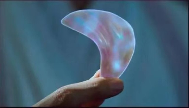 润玉抬手之间掌心浮现一枚龙鳞,鳞片月牙状,呈银白色,浮动着灵光,看起来流光溢彩。