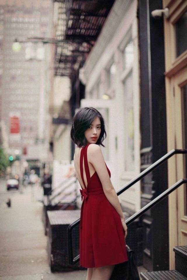 沈亦然身穿一条正红色裙子,迈着轻盈的脚步下了车走向休息室