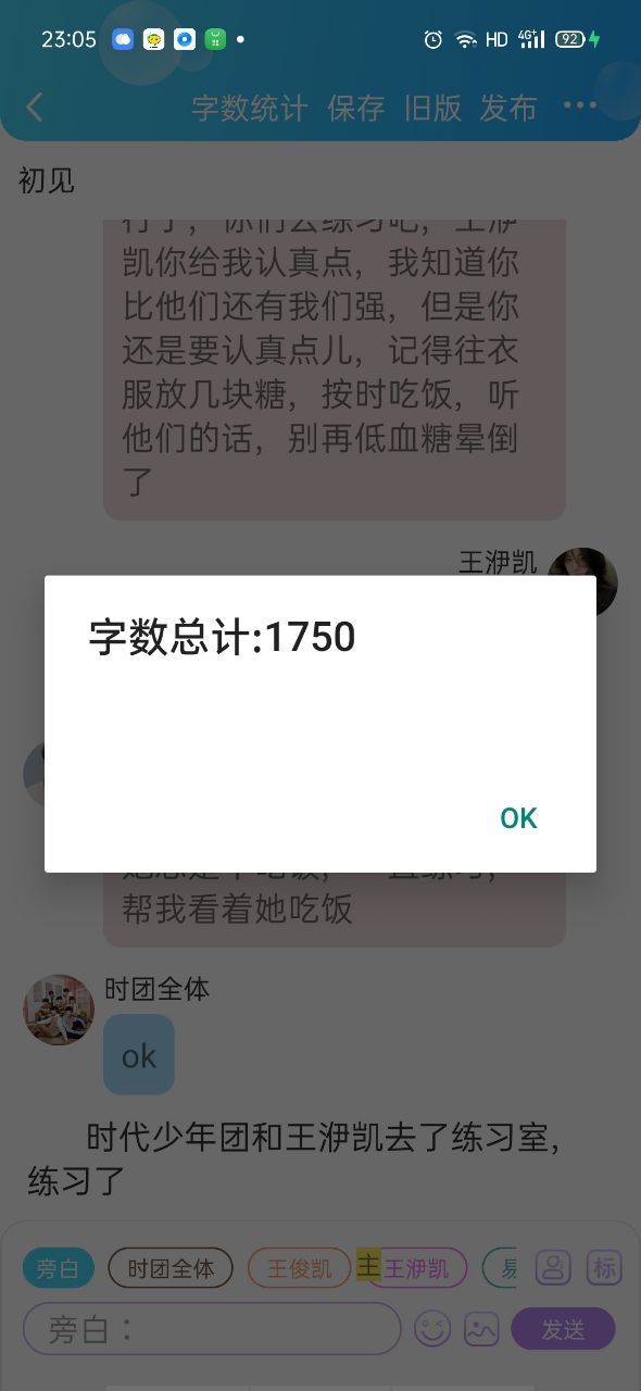 王俊凯行了,你们去练习吧,王洢凯你给我认真点,我知道你比他们还有我们强,但是你还是要认真点儿,记得往衣服里放几块糖,按时吃饭,听他们的话,别再低血糖晕倒了