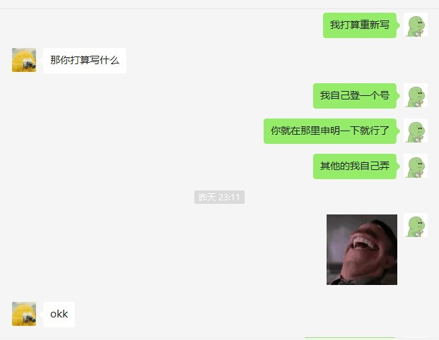 这是我们昨天的聊天记录,绝对都是我的文笔哈,只是修改重启。