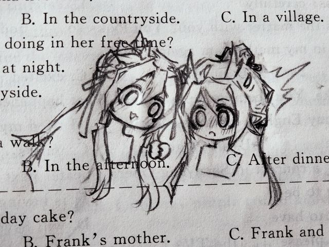 英语卷子上画的