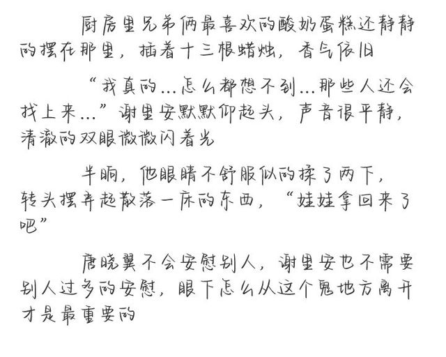 唐晓翼垂了眸子,没再说话。他不知道为什么今晚谢里安会和他说这么多。谢羽晟,也就是谢里安血浓于水的亲哥哥,和唐晓翼年纪相仿,是浮空城引以为傲的破谜者之一,两个人从小就玩得很好,也很喜欢小时候特别爱跟在谢羽晟身后一口一个哥哥的谢里安