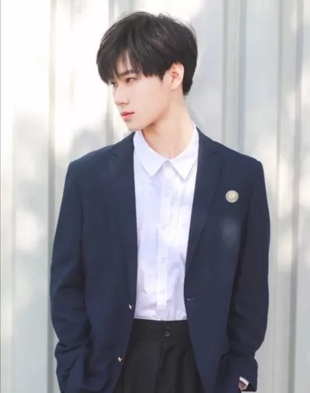 黑色的西装配上白色的内衬,把张真源整个人映衬的极富少年感。