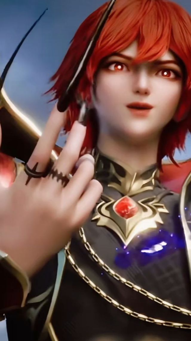 男子的红发如烈火般张扬,眼中闪烁着恶魔般的深邃光芒,在这宁静的画面中显得格外引人注目。