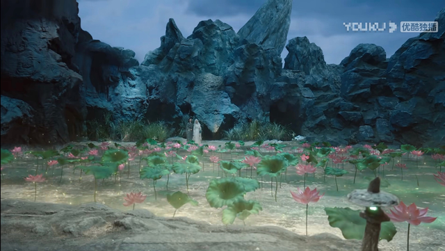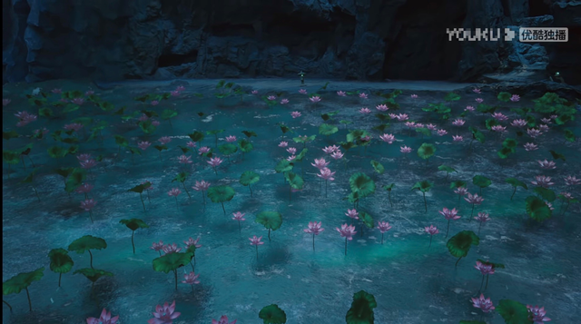 应渊施法变出一片莲花。