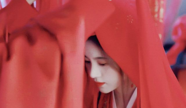 尹峥迷迷糊糊地推开房门,看见新娘乖巧地坐在塌上,身着虹裳霞帔,百无聊赖地扇动着手中的团扇,盖头随风微动,容颜若隐若现。