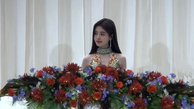 美奈提着裙摆走进来,在聚光灯闪烁和粉丝们的鼓掌声下,美奈走上台