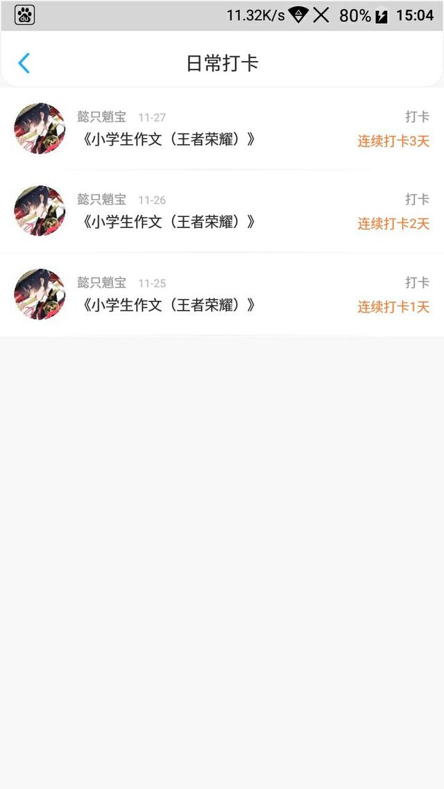 身为小学生的作者现在社会竞争那么激烈,谁家的孩子没有坚持个十年八年的特长,你再看看你自己,才小学六年纪,每天花个几秒打卡,才打卡了三天就坚持不下去了。这点小事都坚持不了, 你以后上社会怎么办啊?!