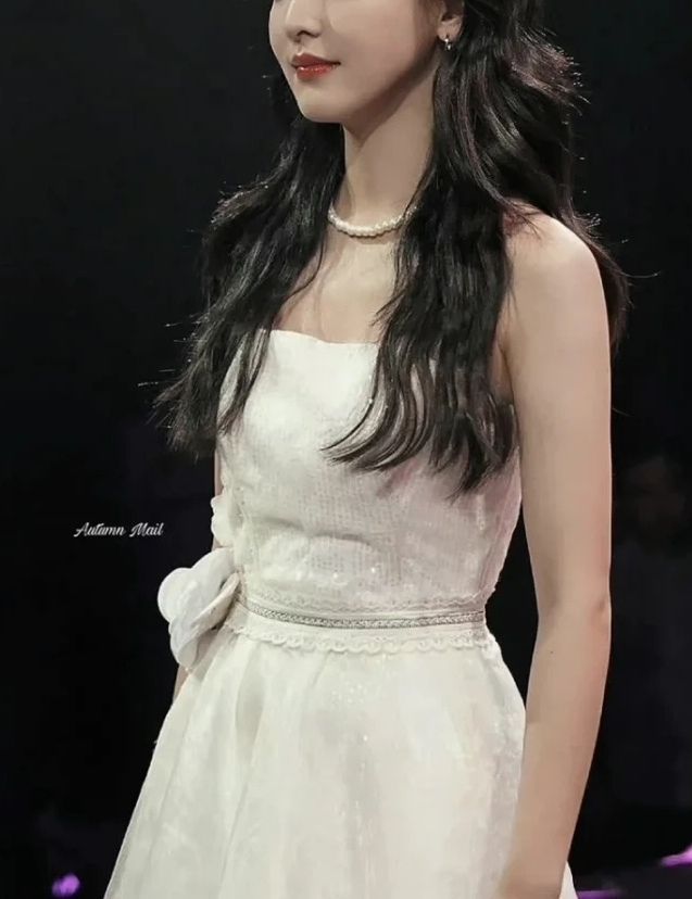 顾眩翡一身纯白色的连衣裙一头乌黑的长发披肩散落,白皙的肤质透着淡淡红粉,薄薄的双唇如玫瑰花瓣娇嫩欲滴。她的五官很立体,鼻梁高挺、眉毛修长,嘴唇丰润,整个人给人一种很温柔、很舒服的感觉,但又不失俏丽、性感。