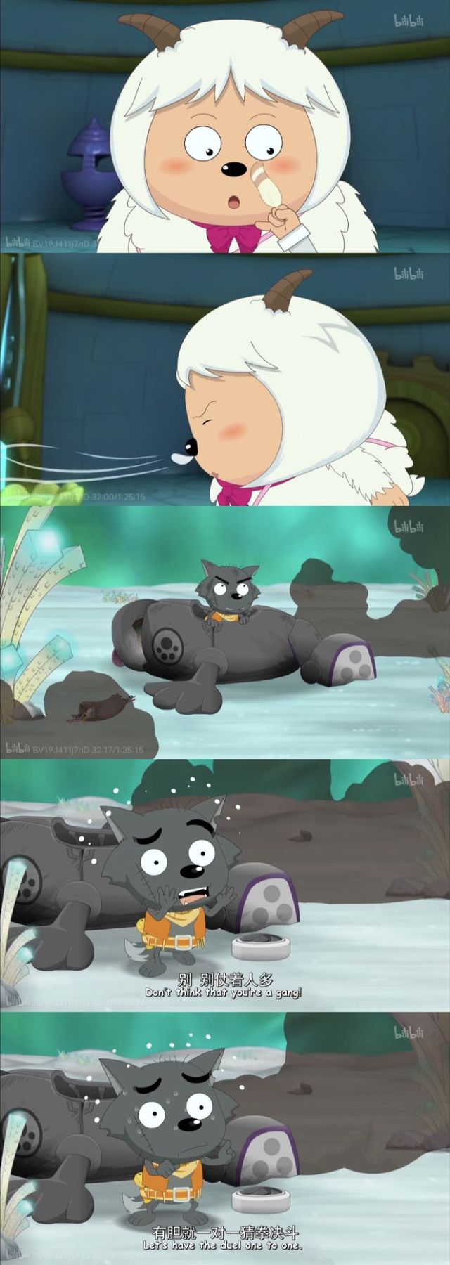 灰太狼正想解释只见黑太郎一个眼神撇了过来,灰太狼吓得不敢再继续说下去了。