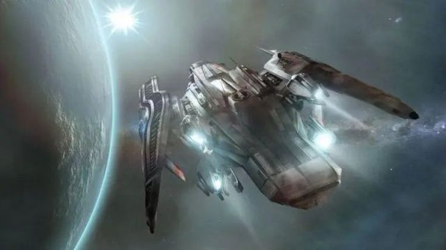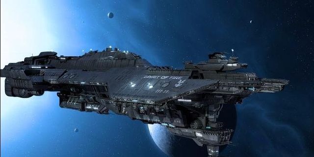 蜥蜴人的战舰,外形好似雪茄,是长条形的,而人类的战舰,则是下图中这样的。