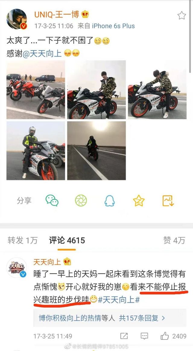 这可把王耶啵兴奋坏了,在这么美丽又开阔的地方骑着大摩托车驰骋是多么惬意的一件事。立马和大摩托来了几张合影,发了微博。