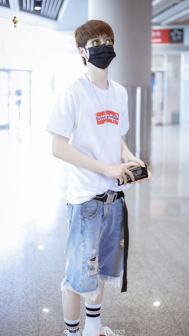 今天的王耶啵虽然只是简简单单的白T恤蓝色牛仔短裤,带着黑口罩棕色墨镜,但他依旧是人群中最亮眼的。粉丝发现,王耶啵带着耳机哼唱着歌曲,那棕色的头发软软的,嘴角还是时不时微微上扬,整个人看起来特别温柔,神采奕奕,心情特别愉悦的感觉。