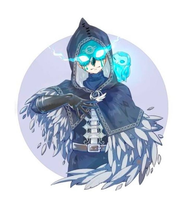 他那银色的头发以及一只蓝,一只黄的异瞳使得他只能天天带着眼罩和兜帽,因此,村里的人都把它当成异类,说他是灾星。他在村里人的咒骂和诅咒中度过了14年。