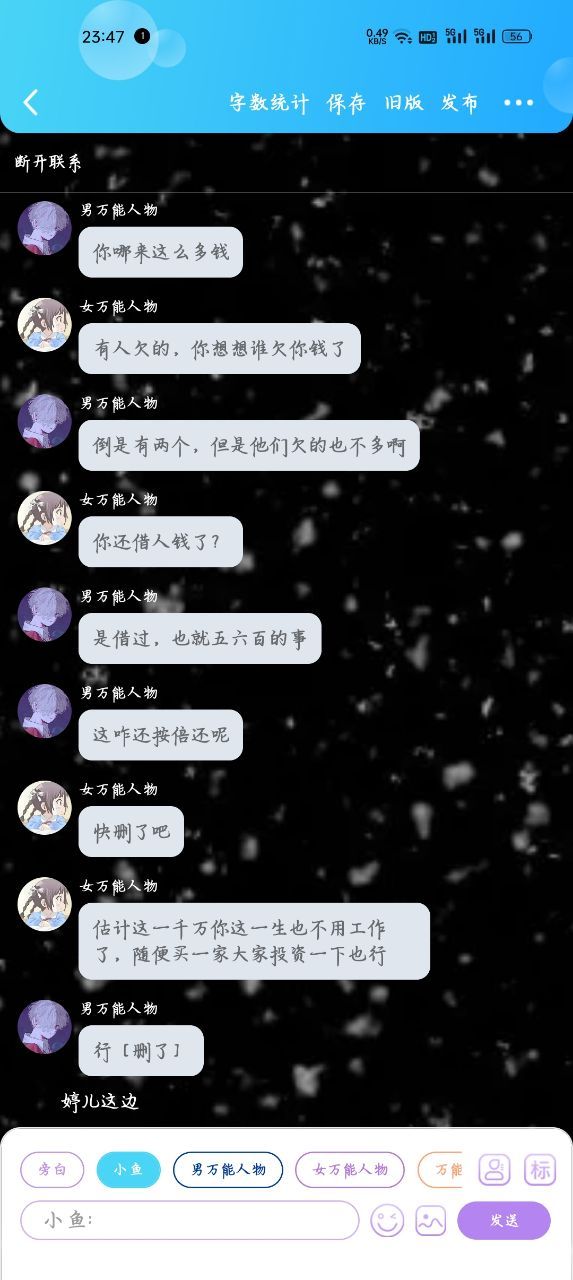 鹏飞要不是只会给一堆钱,让他去买自己想买的,从不陪伴,要不就是没钱之前生死相依,有钱之后,找好看的美女