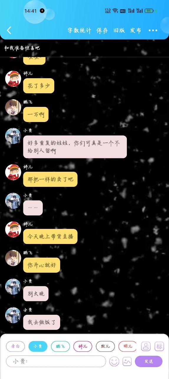小辉[和大家,给了婷儿两千五,鹏飞两千五]婷儿。你也有出力的