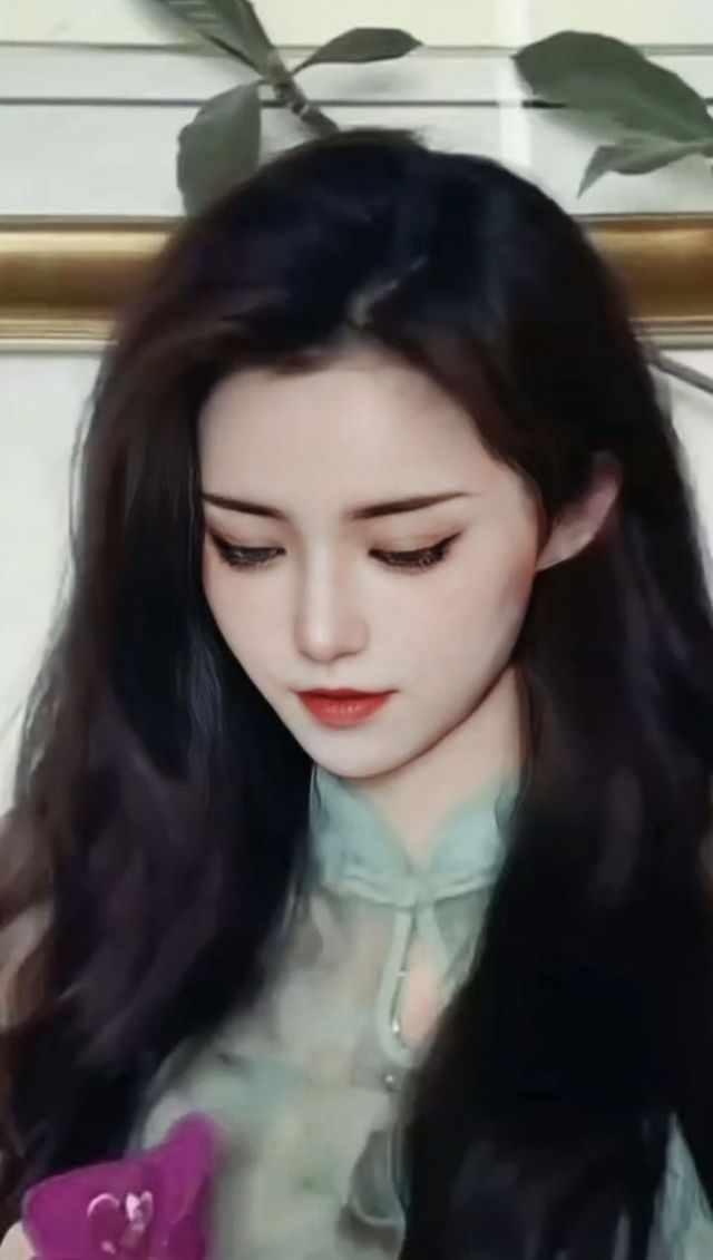 小姑娘穿着一身浅绿色的改良旗袍,贴身的剪裁把小姑娘的身材完美的勾勒了出来,整个人清冷又矜贵