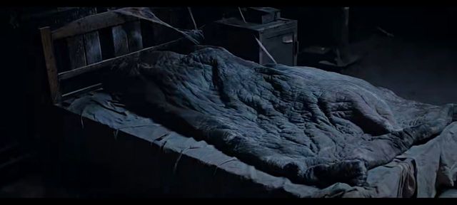 吴邪拿木棍戳了两下,没任何反应,他蹲下来想探探床底,由于这个角度不好拿手电筒,我便也蹲了下来,帮他照着灯