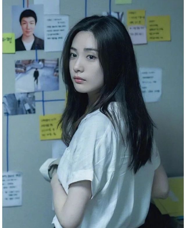她长相清秀,一头海藻般乌黑的长发披散在肩头。