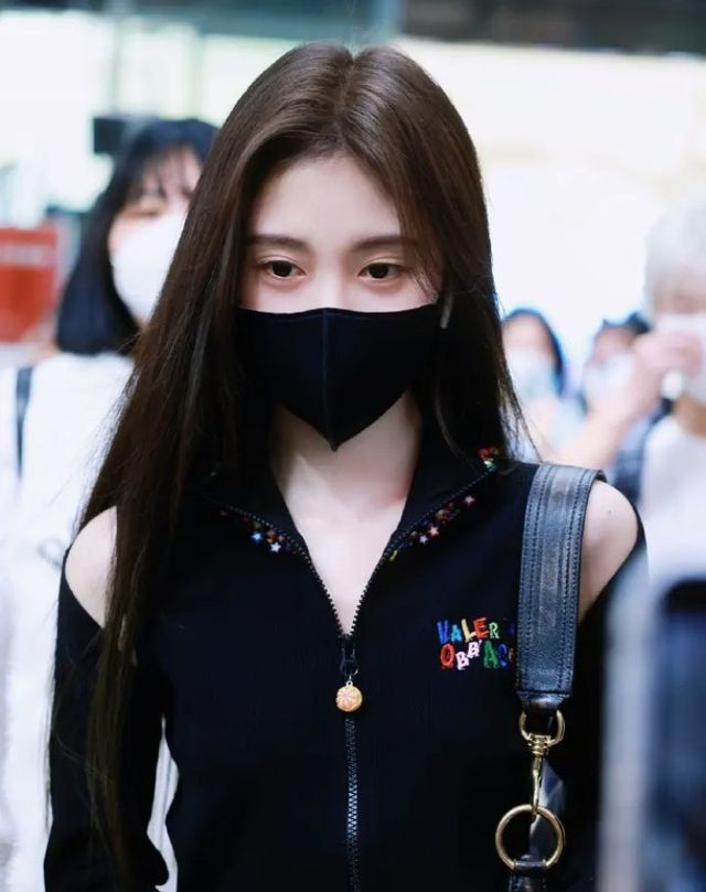 飞机场,一个女孩儿,一身黑衣戴着口罩,看起来霸气十足