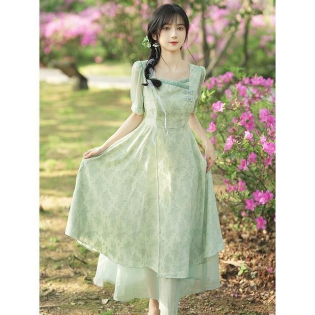飞机上,一位穿着绿色连衣裙的人在说话。