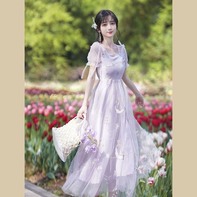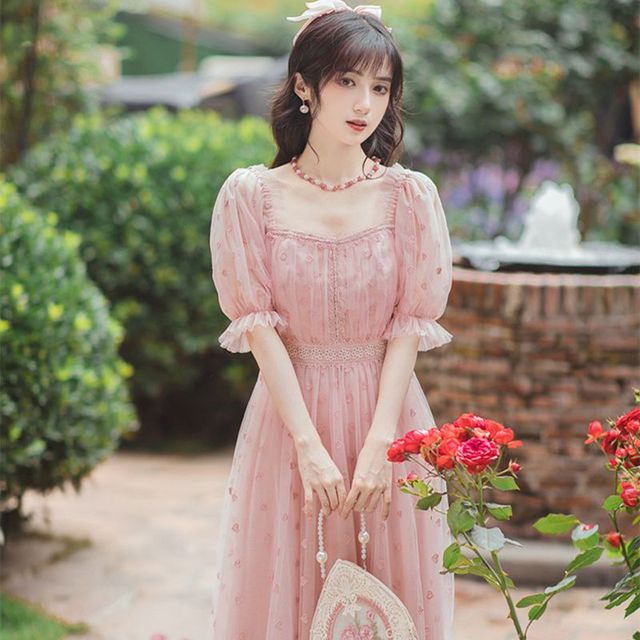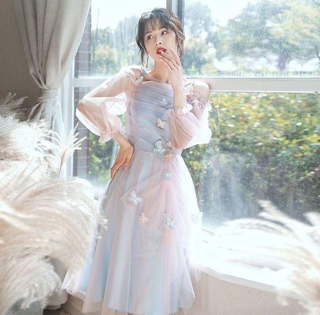 一个紫色头发穿着粉色连衣裙的人说。