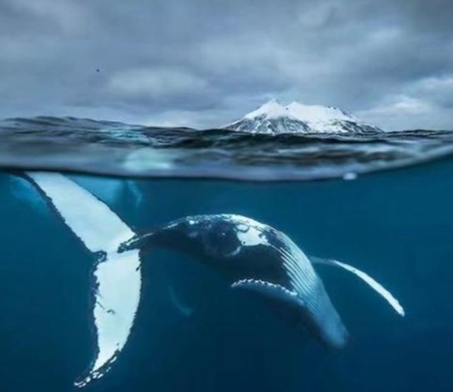 这两只鲸鱼曾经在广阔的海洋中携手游弋,翻腾跃起,遨游在浩瀚无际的深蓝之中。现在,它们再次相遇,然而这一次却是生死的别离,命运将它们推向了无法避免的终结。