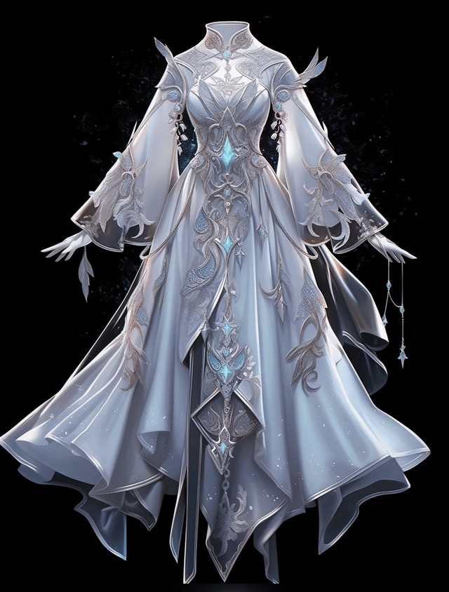 裙摆如流云舒展,末端轻轻绽放,宛如一幅细腻的水墨画卷