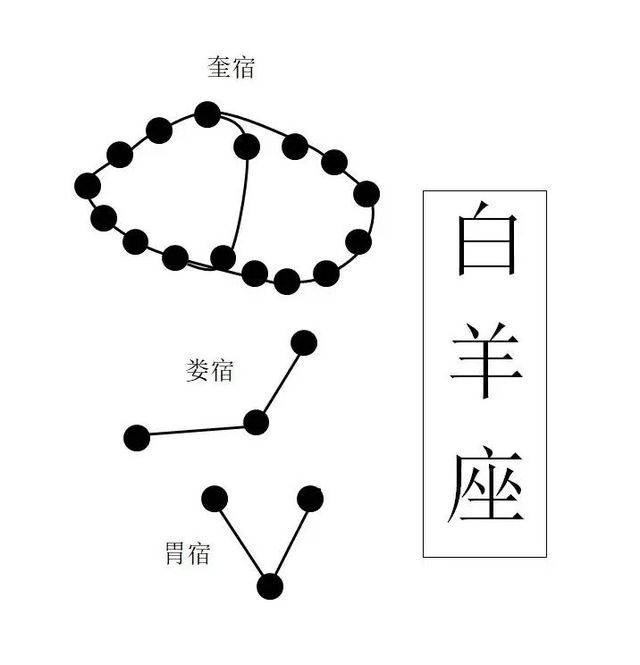 这是因为,“白羊”之所以得名,是因为二十八宿中的奎宿看上去其外形颇像一个“白”字,娄宿、胃宿看上去颇像两只羊头,奎、娄、胃合在一起,是谓“白羊”。