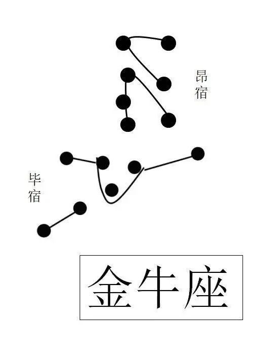 和白羊座一样,金牛座之所以得名,不是天空中有金色的牛,而是二十八宿中的昂宿外形看上去颇像两个金属冶炼炉,是谓“金”;毕宿看上去颇像一头伸着脖子在吃草的牛,是谓“牛”;昂宿、毕宿合在一起,是谓“金牛”。