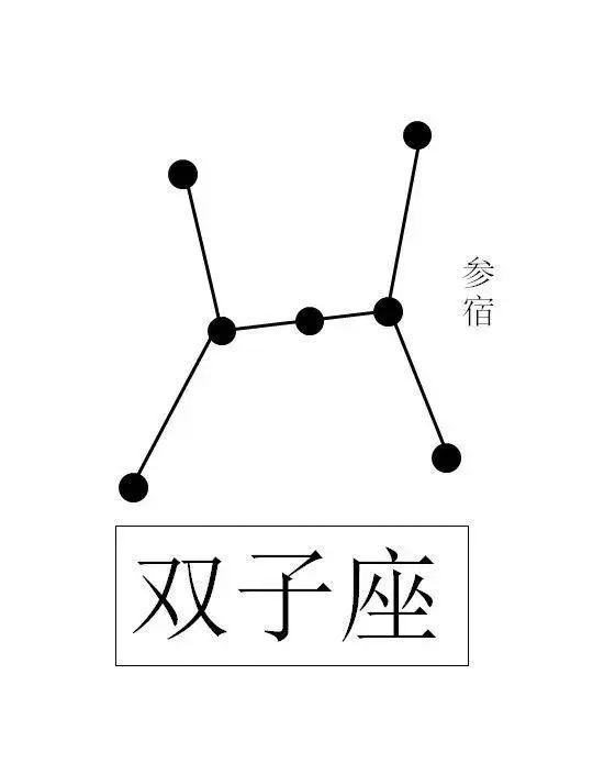 二十八星宿中有一个参宿,其外形看上去颇像两个背对背站着的人,是谓“双子”。