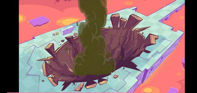 随后粗心超人将炸弹扔向怪兽,你们连忙躲到比较远的巨石后面,炸弹发生巨大爆炸,等你们从巨石后面出来时,看到地面上的深坑都震惊不已