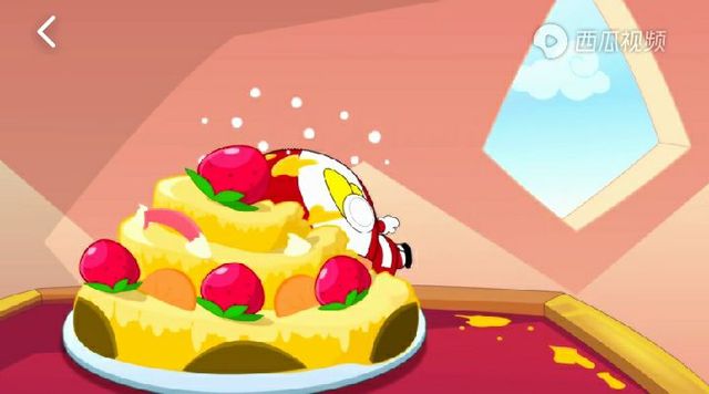 比如说开心超人吃蛋糕,突然被人推了一下,整个人都塞到了蛋糕里