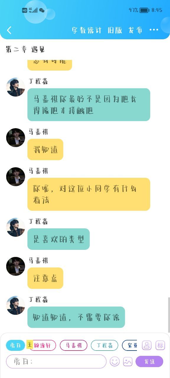 上面说着大概意思是宋亚轩,也就是顾逸轩爸爸的兄弟的儿子,因为刚回国还没置办房子就让他过来跟我一起住,好有个照应,可能是因为贺峻霖的事情,没注意到手机