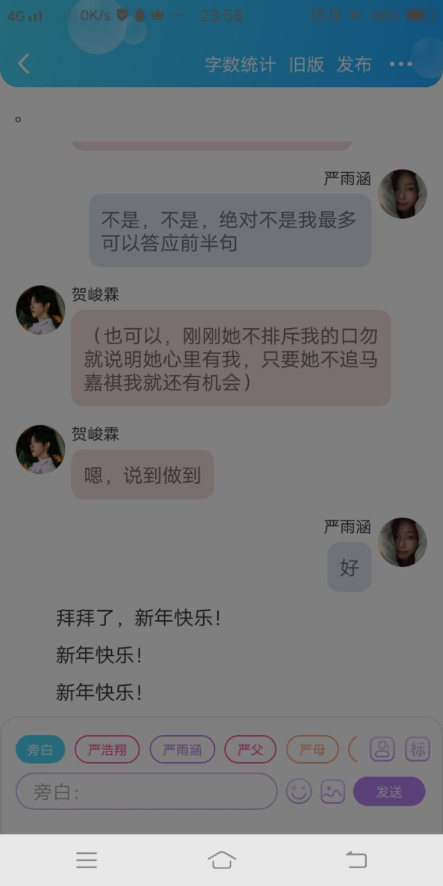 刘耀文起身走到床边搂上严雨涵的要附身要亲下去,严雨涵感觉到了一张脸正在靠近她没忍住就睁开眼,贺峻霖在一旁躲着看见那个男人快要亲上严雨涵没忍住冲了出来给了他一拳,贺峻霖刚回来也不是很清楚国内的人和事所以也就不知道刘耀文是谁,不过他也不屑于知道他是谁