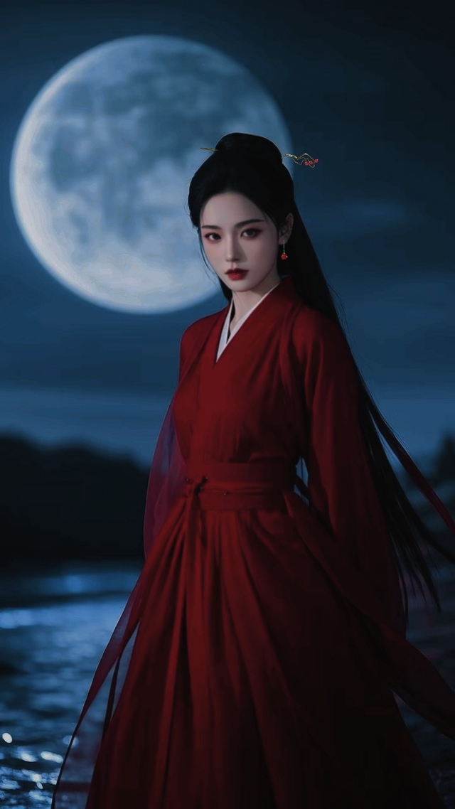 这时,一阵极轻的脚步声传来,踩在层层落叶上,发出细微的簌簌声。魏无羡瞬间绷紧神经,尽管身体虚弱,还是本能做出防御姿态。月光透过茂密枝叶的缝隙,洒下斑驳光影,一位身着如火般明艳红袍的女子款步走来。那红色张扬热烈,在暗沉山林中格外夺目,可她面容清冷如霜,肌肤在月光下泛着微光,眼眸深邃犹如寒潭,周身散发着生人勿近的疏离气息,与身上的红袍形成奇异反差。