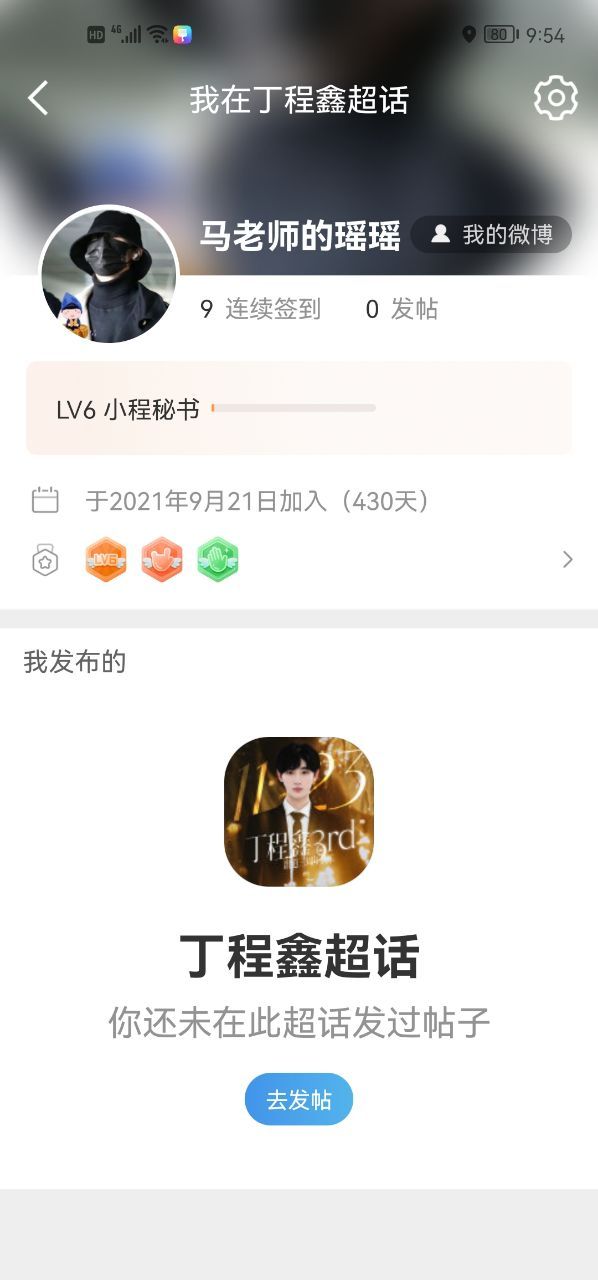 没有亓妈的头像,就用我超话破6级的截图做头像吧