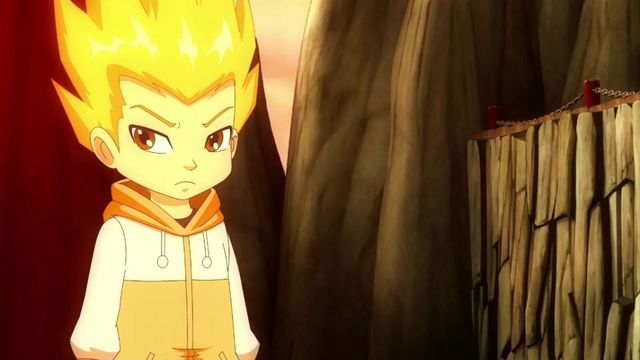 屏幕里有一个红色头发的男孩和一个米白色头发的女孩追着修玥【不知道的可以看斗6最后一集】