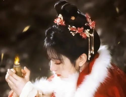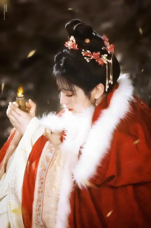一袭红衣,手持一杆兵器……
