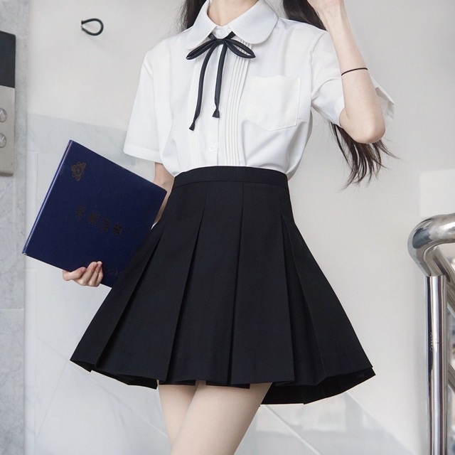 这是你们学校的校服,短裙,完美的显出了你的身材
