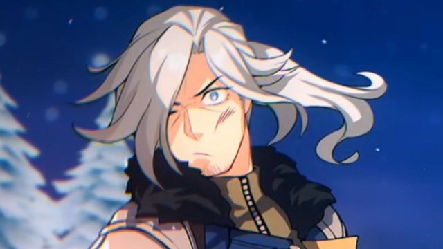 晶蓝色的头发随意披散着,像是很久没有搭理一般,身着着白色衬衫,系紫色领带,套着浅色毛衣,外穿黑色西装。黑色白边短裤,圆润紧绷的大腿上绑有黑带,纤细的双腿上,有着显眼的黑色护甲。