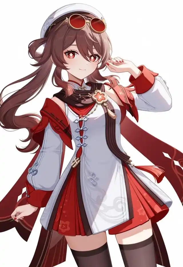 红白相间的外衣看起来很合身,没有一丝不适,赤棕色的双马尾自然垂落,再搭配上那白色枫丹礼帽,显得更为俏皮。