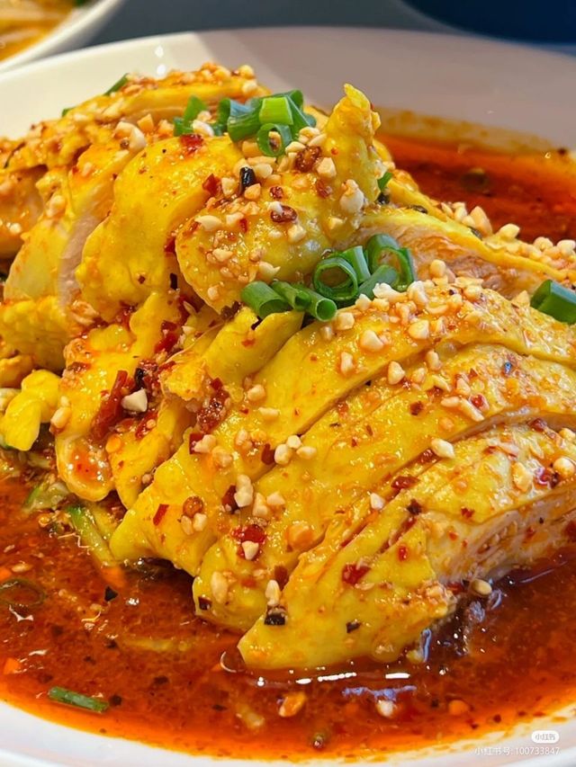 金如曦这口水鸡,鸡肉又入味又嫩,鸡皮又滑又脆又有韧劲,是蒜香的酱汁和红油裹满了整块肉带着花生碎在你嘴里爆炸的感觉