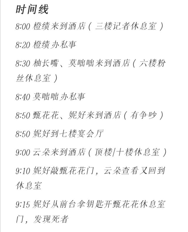 皖确点了点头,她有预感嫌疑人们好像都有私事要办,柚长嘴整理了一下衣服开始她的不在场证明.
