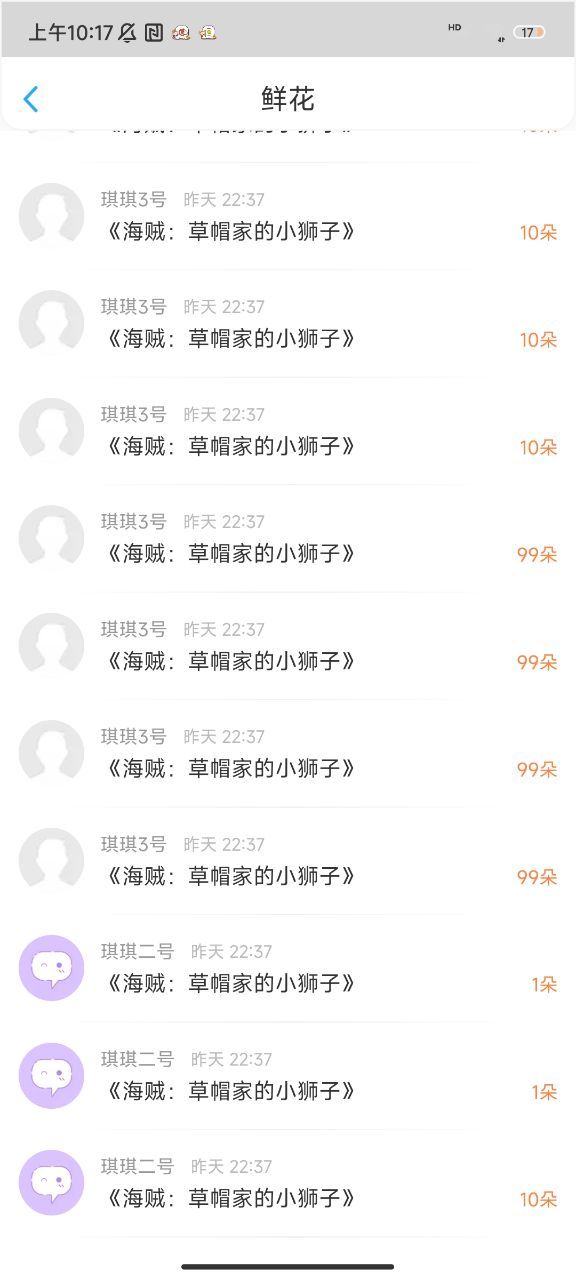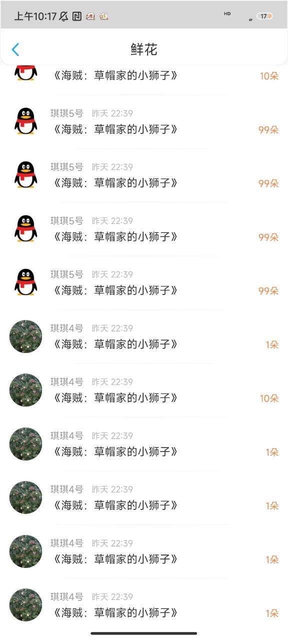 看!昨日份的🌸🌸!昨天属于是鲜花一大串,琪琪占几页哈哈哈哈!快来看我的宝儿的一堆小号哈哈哈哈哈!!