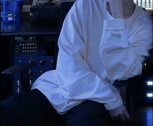 一身简单的宽松白色卫衣,干净利落但伴着坐姿又有种慵懒。