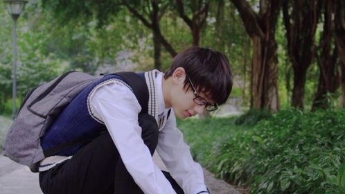 抬起头,看见了前面好像有一个男孩子在蹲着
