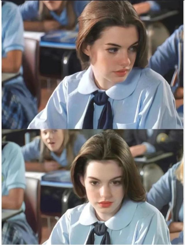 安妮海瑟薇,第一张笑起来非常明媚,像阳光洒在心尖。第二张可能是非常早期的一张照片,非常的纯然,还有一点婴儿肥。有些懵懂的美。