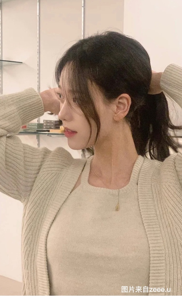 穿着朴成训平时最喜欢搭配的针织类型,侧脸轮廓非常清晰,小巧的嘴巴和鼻子很精致。气质有点像韩国的李知恩。